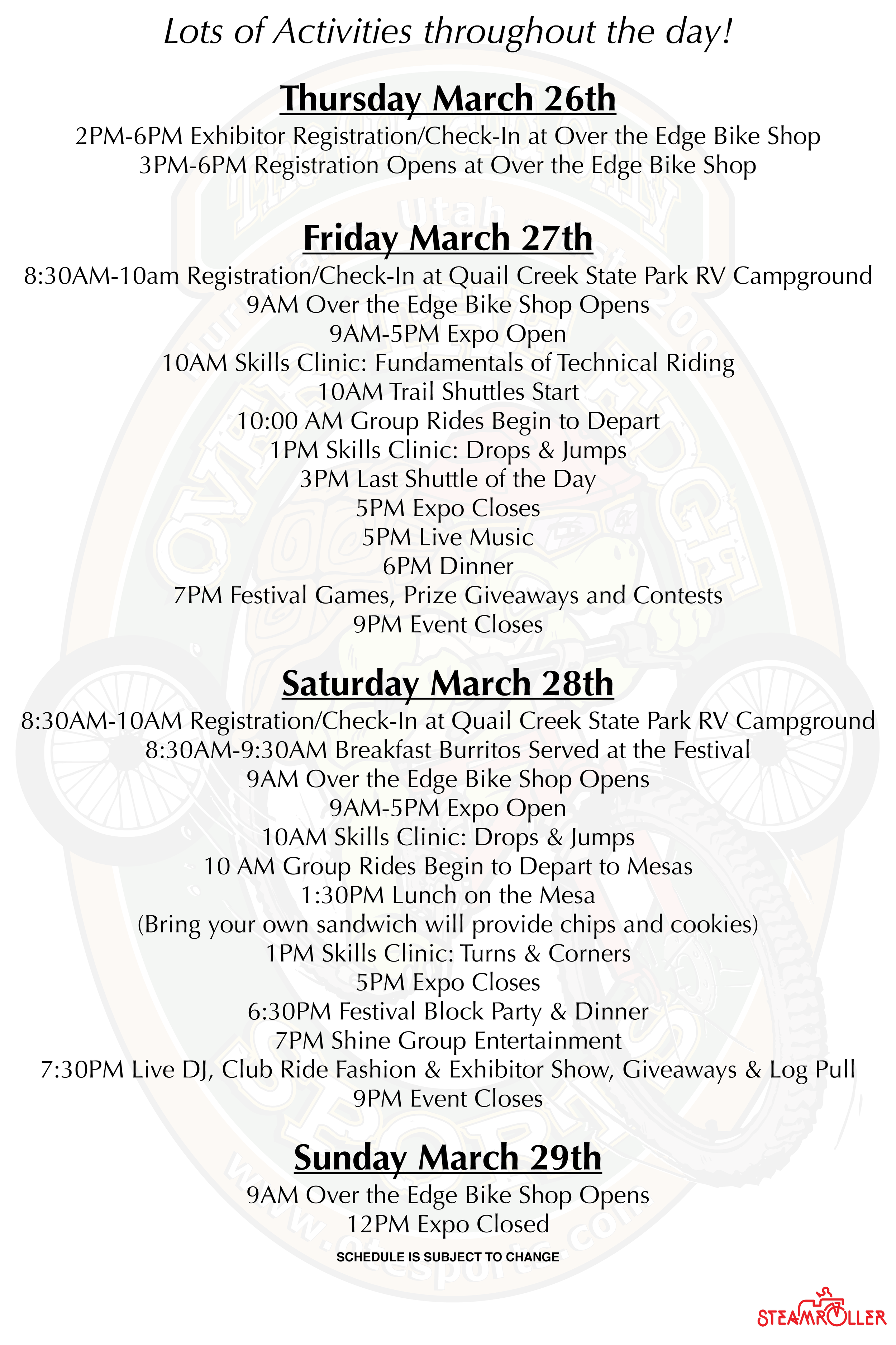 Come ride with us on some of the most stunning trails in the world with Zion National Park as your backdrop. The festival kicks off on Friday morning - check off some bucket-list mountain bike trails like Gooseberry Mesa, JEM Trail and Guacamole! For 2026 we are back to Quail Creek State Park with lots of festivities, prize drawings and giveaways. There’s enough time on Sunday for one last ride before the venue closes at 12 pm. Check back with us on all the updates . . .